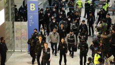 캄보디아 스캠 조직에서 활동하다 검거된 한국인 피의자 73명이 23일 인천국제공항을 통해 강제 송환되고 있다. <ⓒ투자가를 위- 50분전