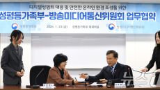 (서울=뉴스1) 임세영 기자 = 원민경 성평등가족부 장관(왼쪽)과 김종철 방송미디어통신위원장이 23일 서울 종로구 정부서울청사- 17시간전