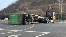 대구 범안삼거리서 25톤 컨테이너 넘어져 정체