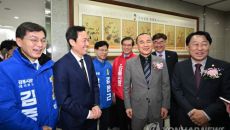 "드디어 만났네요" 유력 주자 김진태·우상호, 강릉서 첫 조우