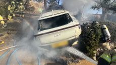 도로 구조물 들이받은 전기차에서 불...운전자 숨져