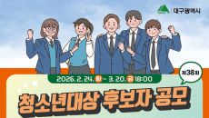 대구시는 지역사회 모범이 되는 청소년을 발굴·포상하기 위해 ‘2026년 제38회 대구광역시 청소년대상’ 후보자를 다음달 20일- 2시간전