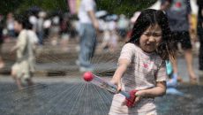 서울 낮 최고기온이 29도까지 오르며 초여름 더위가 이어진 19일 서울 여의도 물빛광장을 찾은 시민들이 물놀이를 하며 더위를- 2026-04-19 17:49