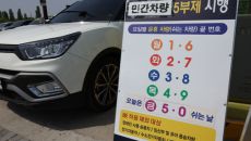 정부가 공영주차장에 5부제를 적용한 지 12일째인 19일 서울 여의도 한강변 둔치주차장 입구에 차량 5부제를 알리는 입간판이- 2026-04-19 23:11