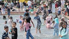 서울 낮기온이 30도에 육박하는 초여름 날씨를 보인 19일 서울 여의도 물빛광장을 찾은 어린이들이 물놀이를 하며 이른 더위를- 2026-04-19 23:12