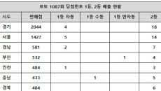 로또 1087회 당첨번호 조회, '1·2등 함께 터진 곳 알고 보니'