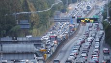 추석 연휴 나흘째인 1일 오후 서울 경부고속도로 잠원 IC 인근 상(왼쪽)·하행선이 차량으로 붐비고 있다. 도로공사는 이날 귀- 2023-10-01 16:59