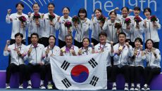 1일 중국 저장성 항저우 빈장체육관에서 열린 항저우 아시안게임 배드민턴 여자 단체 결승에서 중국에 승리하며 금메달을 딴 한국- 2023-10-01 16:59