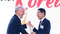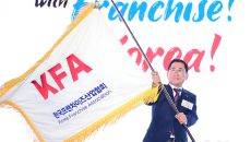 [포토] KFA 협회기 흔드는 나명석 신임 한국프랜차이즈산업협회장