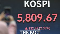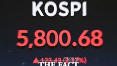 [더팩트ㅣ박헌우 기자] 코스피 지수가 5800선을 넘어선 20일 오후 서울 여의도 한국거래소 전광판에 지수가 나타나고 있다.- 37분전