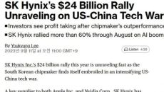블룸버그 “급증하던 SK하이닉스, 미중 기술전쟁 영향 받을수도”