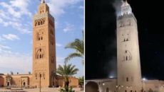 69m 높이로 모로코 ‘마라케시의 지붕’이라 불리는 쿠투비아 모스크 첨탑의 지진 전후 모습. 8일(현지시간) 밤 강진 이후 찍- 2023-09-11 01:27
