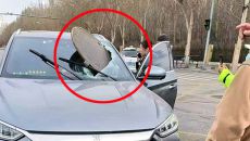 마른 하늘에 날벼락…중국서 달리던 차 앞 유리에 박힌 ‘맨홀뚜껑’