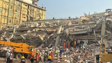 ▲ 30일(현지시간) 미얀마 제2 도시인 중부 만달레이에서 지진으로 붕괴한 스카이 빌라 콘도에서 구조대원들이 작업하고 있다.- 2025-03-31 09:39