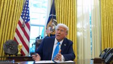 도널드 트럼프 미국 대통령이 러시아가 우크라이나 전쟁 휴전에 합의하지 않을 경우 러시아산 원유를 구입하는 모든 교역 상대국에- 2025-03-31 00:35