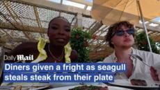 식사 중 봉변…스테이크 낚아챈 '괴도' 갈매기(영상)