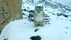 알타이 산맥서 눈표범 세 쌍둥이 포착