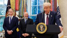 (워싱턴 로이터=뉴스1) 김지완 기자 = 6일(현지시간) 도널드 트럼프 미국 대통령이 백악관에서 1000억 달러 규모의 애플- 2025-08-07 07:46