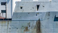미국 해군의 최신형 줌왈트급 스텔스 구축함 USS 마이클 먼수어함(DDG 1001)의 손상된 외벽 상태가 노출되면서 미군 함정- 2025-08-07 00:58