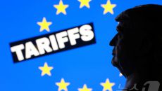 (로이터=뉴스1) 김경민 기자 = 3D 프린터로 제작된 도널드 트럼프 미국 대통령의 미니어처 모형과 유럽연합(EU) 깃발, 그- 9시간전