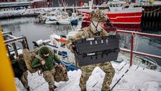 (누크 AFP=뉴스1) 강민경 기자 = 18일 그린란드 수도 누크에 파견된 덴마크 장병들이 장비를 운반하고 있다. 2026.1- 9시간전