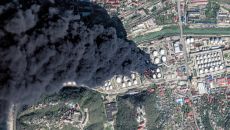 16일 러시아 크라스노다르주의 항구 도시 투압세의 석유시설이 우크라이나군의 드론 공격을 받아 검은 연기를 내뿜고 있다. 같은- 2026-04-18 00:46