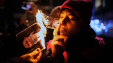 하메네이 사진에 불붙여 담배피우는 이란 난민여성 영상, 이란 저항의 상징으로