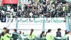 [포토]타노스 코치를 응원하는 현수막을 펼쳐보이는 전북 팬들
