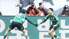 [포토]송민규와 선제골의 기쁨을 나누는 전북 이동준