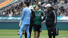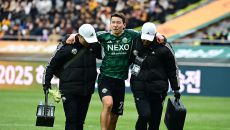전북 현대 김태환이 6일 서울월드컵경기장에서 열린 2025 하나은행 코리아컵 광주FC와의 결승전에서 부상을 당해 코칭스태프에게- 5시간전