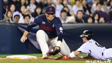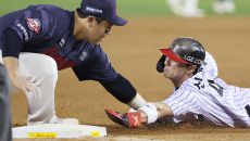 [사진]마운드 근처까지 나와 주루 플레이 펼치는 최원영