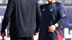 [포토] 유강남, 친정팀 선수들과 반갑게 인사