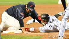 16일 잠실구장에서 열린 LG와 롯데의 경기. 7회말 2사 2루 LG 신민재가 3루를 노렸지만 롯데 한동희에게 태그 당하고 있- 2026-04-16 21:46