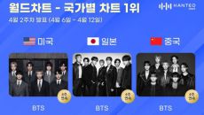 그룹 방탄소년단(BTS)이 한터 국가별 차트에서 다시 한번 글로벌 존재감을 뽐냈다. 한터차트는 17일 오전, 4월 2주 차(집- 2026-04-17 10:13