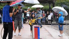 [더팩트ㅣ이새롬 기자] 추석 연휴 셋째 날인 30일 오후 서울 중구 남산골 한옥마을에서 한 어린이가 비를 맞으며 대형 고리 던- 2023-09-30 16:46