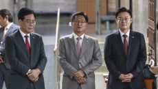 국민의힘 송언석(왼쪽부터), 이헌승, 김성원 원내대표 후보가 16일 서울 여의도 국회에서 열린 원내대표 선출 선거 의원총회에- 2025-06-16 14:53