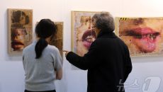 (서울=뉴스1) 김진환 기자 = 22일 오후 서울 강남구 코엑스에서 열린 '월드아트페스타 2026'을 찾은 관람객이 전시 작품- 8시간전