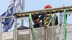 97일간 서울 중구 한화빌딩 앞 교차로 30m 높이의 철탑에서 농성을 벌여온 한화오션(옛 대우조선해양) 하청 노동자가 19일- 2025-06-19 18:22
