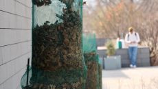 미술관 화단에 낙엽을 모아 둔 통이 놓여 있습니다. 쓸려 모인 낙엽도 이곳에선 왠지 설치 작품처럼 느껴집니다. ―서울 종로구- 2026-04-17 23:06