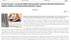 이탈리아 규제 당국, 액티비전 블리자드 조사 진행... "소비자보호법 위반 여부 중점 점검할 것"