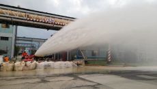 포항제철서 방수포로 배수작업 서두르는 경북소방