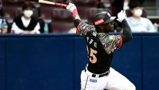 [사진]KT 알포드, '펜스 직격 2루타로 역전 찬스 만든다'