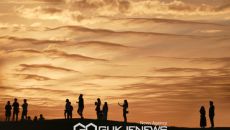 [포토] 연천군장남면 통일바라기 축제...노을에 붉게물든 호로고루 해바라기