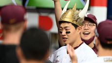 송성문 '바이킹 헬멧을 쓰고 세리머니'[포토]