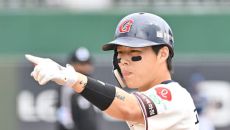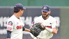 [사진] 렉스의 허슬 플레이에 미소 짓는 박세웅