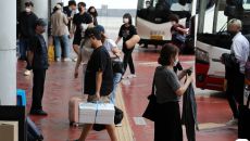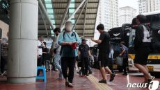 버스에서 하차하는 귀경객들