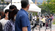 PCR검사 기다리는 귀경객들