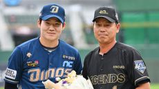 [사진] KBO 40주년 레전드 전준호 코치, 박민우와 기념촬영