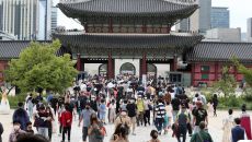 (서울=뉴스1) 김진환 기자 = 추석 연휴 셋째 날인 11일 오전 서울 종로구 경복궁이 추석을 맞아 나들이 나온 시민들로 북적- 2022-09-11 12:48