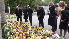 10일(현지시간) 엘리자베스 2세 여왕의 시신이 안치된 스코틀랜드 밸모럴성에 영국 왕실이 방문해 헌화된 꽃을 보고 있다. 연합- 2022-09-11 12:02